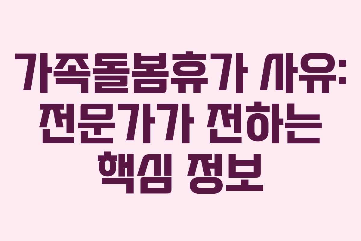 가족돌봄휴가는 가족 구성원 중 아프거나 장애가 있는 경우 제공되는 중요한 제도입니다. 이 제도는 근로자가 가족을 돌보기 위해 필요한 시간을 확보해 주며, 심리적 및 신체적 부담을 덜 수 있도록 돕습니다. 이번 글에서는 가족돌봄휴가의 사유에 대해 자세히 알아보겠습니다.