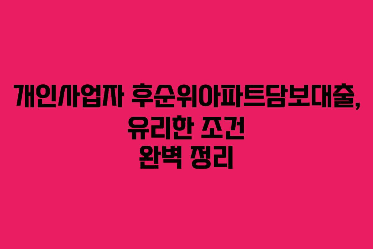 개인사업자 후순위아파트담보대출은 사업 운영에 유용한 수단이 될 수 있지만, 신중한 접근이 필요합니다. 다음은 대출 조건을 요약한 표입니다.