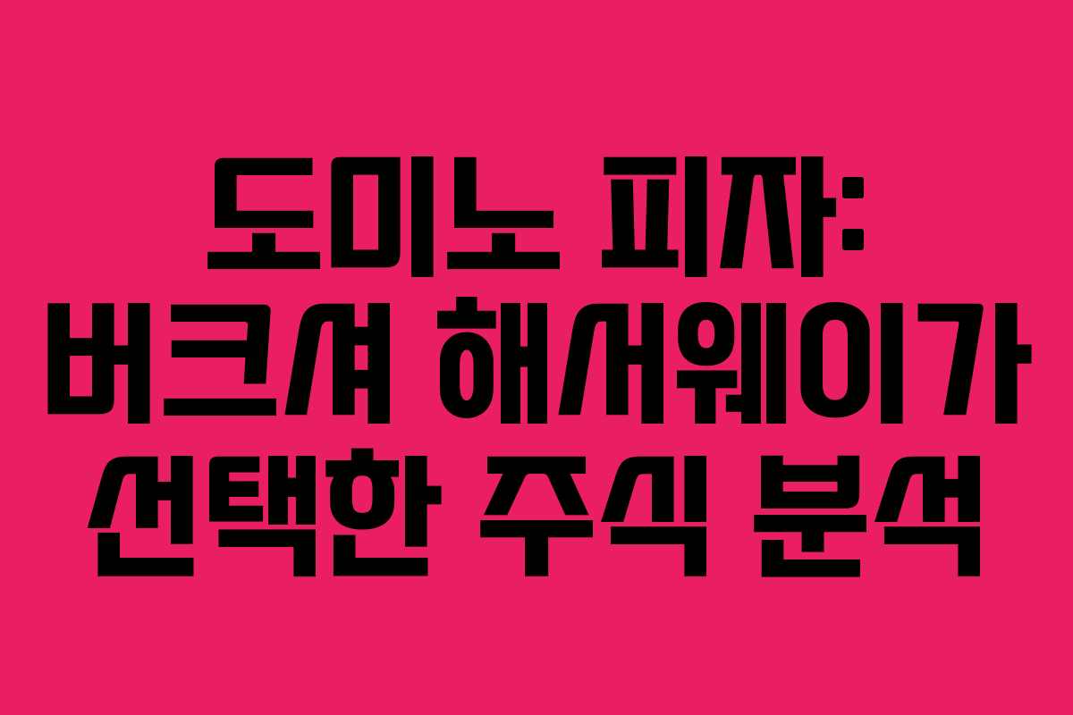 도미노 피자는 1960년 미국 미시간주에서 시작된 피자 프랜차이즈로, 혁신적인 배달 시스템과 디지털 주문 플랫폼을 통해 글로벌 시장에서 지속적인 성장을 이루고 있습니다. 최근 버크셔 해서웨이가 도미노 피자에 투자한 사실은 주목할 만한 뉴스입니다. 이 글에서는 도미노 피자의 매출, 배당금 정보, 주가 전망 등을 심층적으로 분석해보겠습니다.