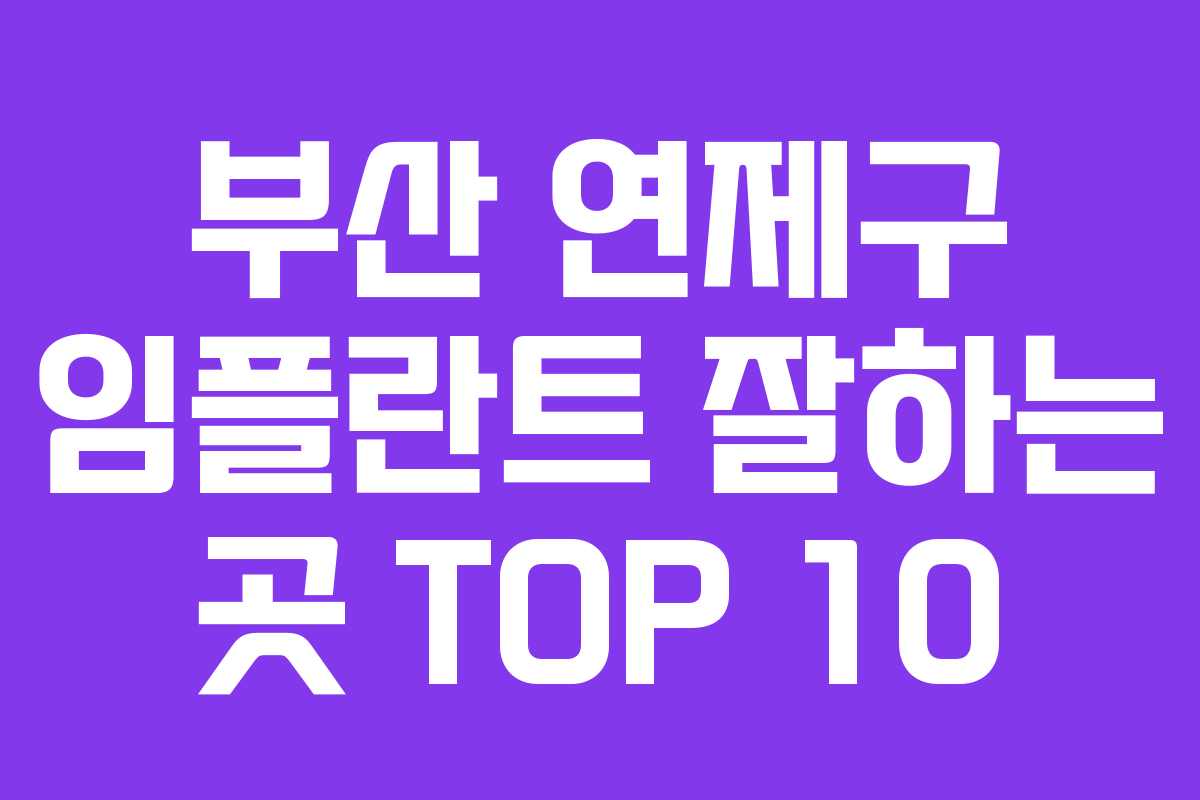 부산 연제구에는 다양한 임플란트 전문 치과 병원이 있으며, 이 글에서는 경험과 전문성이 높은 TOP 10 병원을 소개하고 있습니다.