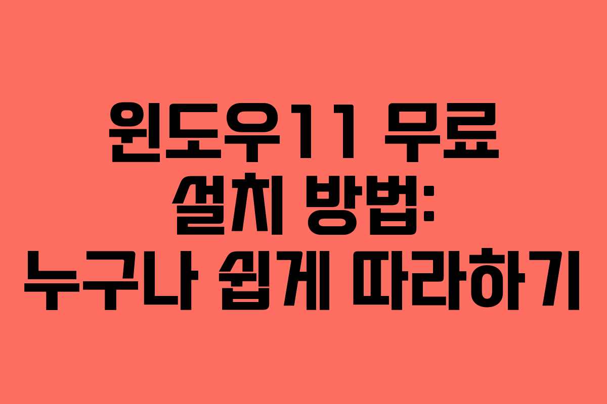 윈도우11 무료 설치 방법: 누구나 쉽게 따라하기