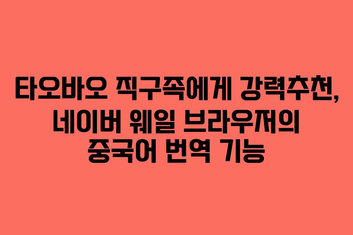 네이버 웨일 브라우저는 중국 직구를 즐기는 사용자에게 매우 유용한 도구입니다. 이 브라우저는 텍스트 번역은 물론, 이미지 속 중국어 번역까지 지원하여 타오바오와 같은 사이트에서의 쇼핑을 보다 수월하게 만들어 줍니다.