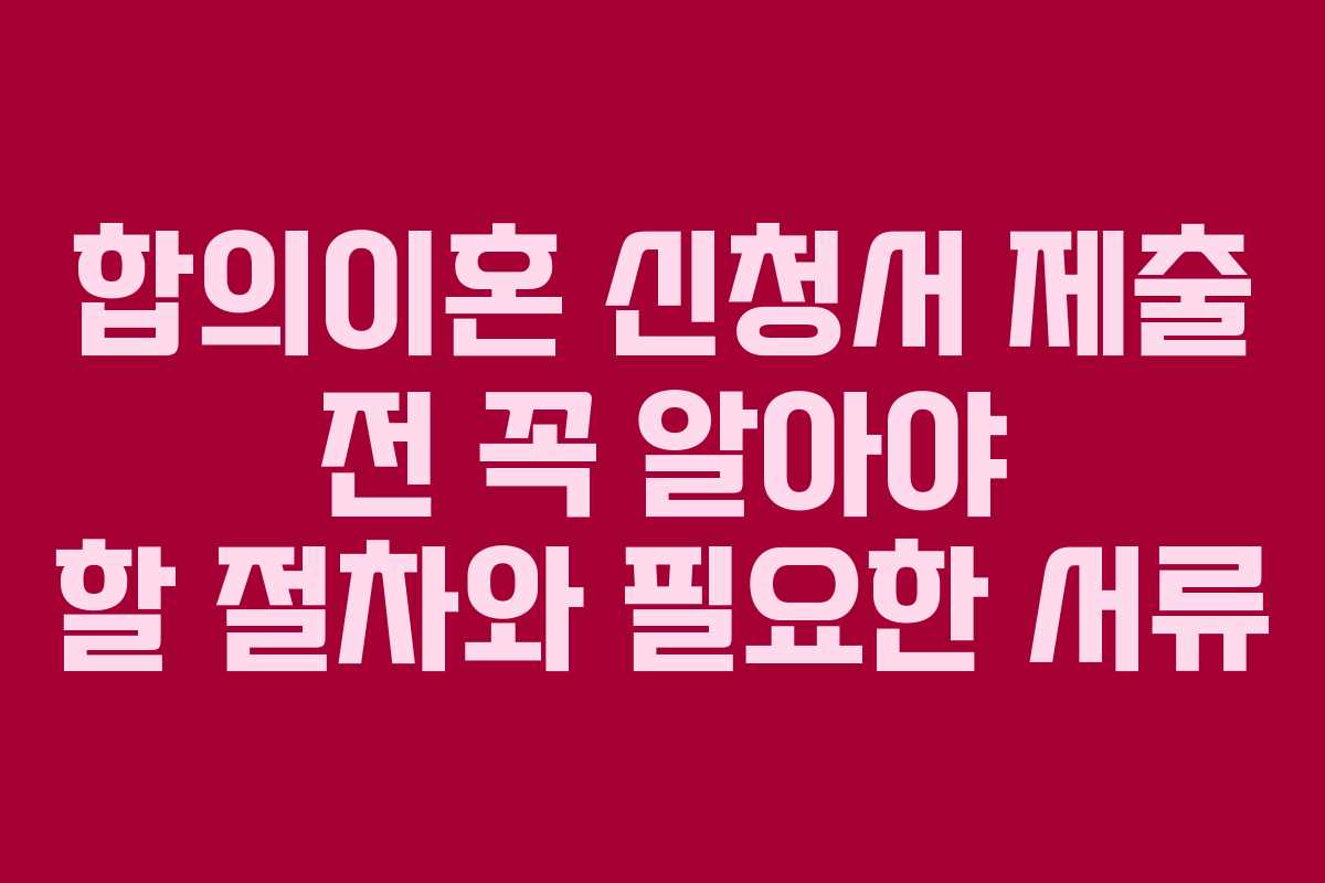 이혼을 결심한 순간, 많은 분들이 합의이혼 신청서 작성과 관련된 절차에 대해 고민하게 됩니다. 특히 어떤 서류가 필요한지와 제출 방법에 대한 혼란이 생기기 쉽습니다. 이 글에서는 합의이혼 신청서를 준비하는 데 필요한 중요한 정보들을 정리해 드리겠습니다.