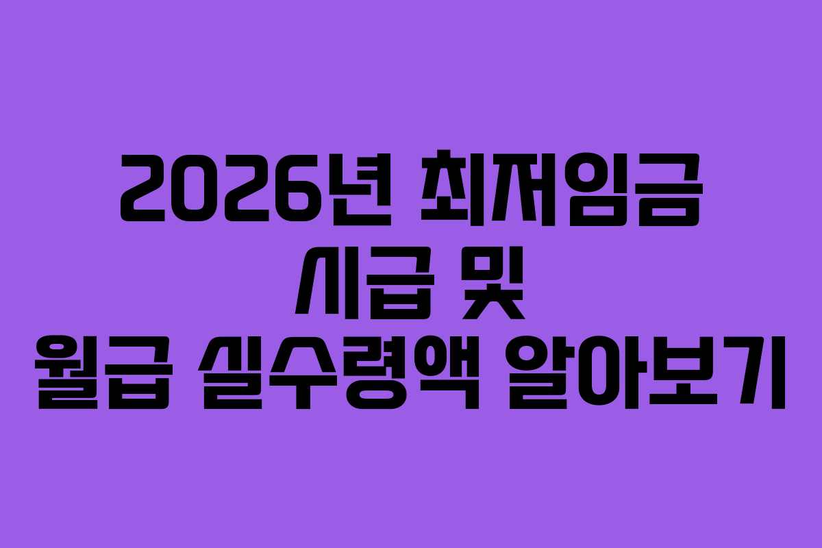 2026년 최저임금 시급 및 월급 실수령액 알아보기